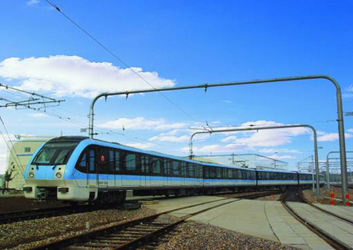 列车采用只需一人操作或监控的自动化列车控制系统;一辆驾拖车和二辆动车为一组列车单元,六辆车为一列车编组;列车两端装设可开启的乘客紧急疏散装置;牵引系统采用变压变频控制;采用铝合金车体,无摇枕转向架;供电方式:架空接触网。