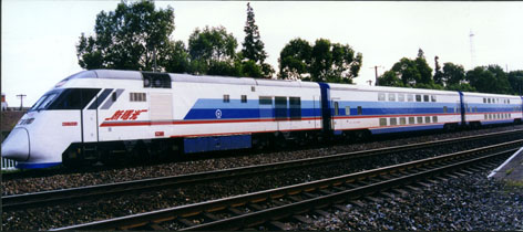 “新曙光号”准高速内燃动车组是铁道部立项研制的首列新型内燃动车组。采用二动九拖方式,动车为戚墅堰机车车辆厂研制,拖车为浦镇车辆厂研制的双层客车。客车采用一系列新工艺、新技术:上——下封闭式楼梯;新型断面结构。